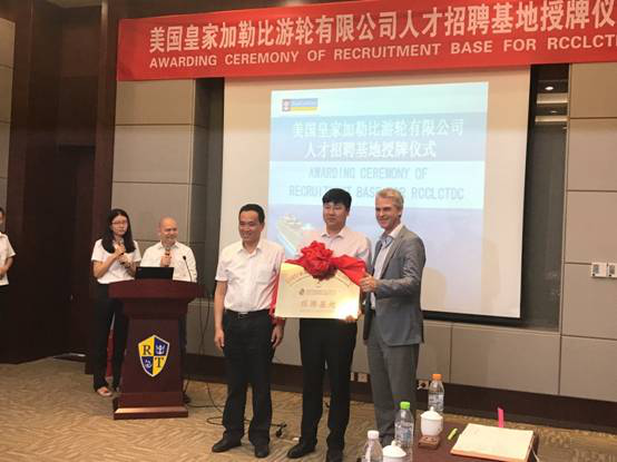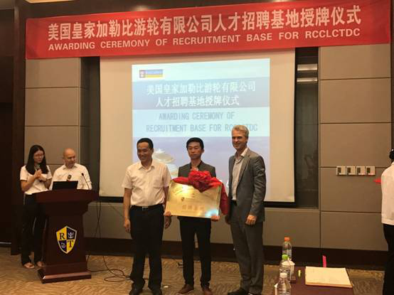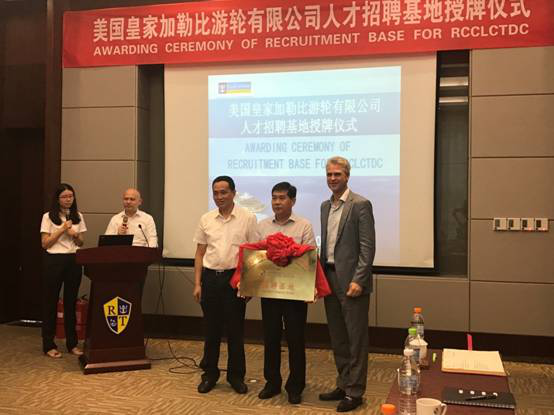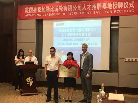 2017年 6月6日上午,美國皇家加勒比游輪有限公司人才招聘基地授牌儀式在天津海運職業學院海郵酒店絢麗廳舉行。授牌儀式由美國皇家加勒比游輪有限公司(簡稱RCCL)亞太地區人力資源總監Lawrence主持,全球人才管理副總裁Hernan、亞太地區組織發展與船員顧問Francois和我院黨委書記馬魁君、院長武寶林、國際交流處(培訓中心)處長耿春梅及五所招聘基地學校領導出席儀式。