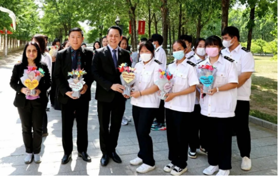 陳昀書記代表學院對泰國職教委一行來訪表示熱烈歡迎。學院泰國留學生為遠道而來的故鄉(xiāng)“親人”送上了精心制作的花束。