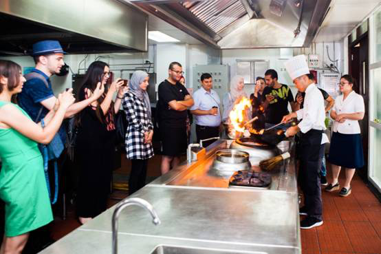 我院組織了豐富多彩的交流活動。突尼斯學生分為兩組分別體驗了中餐烹飪專業老師現場教學中國傳統菜肴“宮保雞丁”的做法;西餐面點專業老師現場指導學生進行面點制作。隨后,訪問團參觀了天象館,不僅觀看了星空、天體坐標、壯麗恢弘的宇宙空間,還看到了經過計算機處理的穹幕影片,欣賞神秘的海底奇觀等動態的精彩畫面。