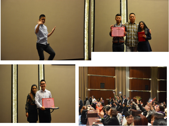 我們的一位男學(xué)員,還即興上演了一段韓國辣妹舞蹈,更使比賽掀起了新的高潮。大賽共產(chǎn)生出一等獎一名、二等獎兩名、三等獎三名、最佳人氣獎一名、優(yōu)勝獎若干名,我們?yōu)楂@獎學(xué)員準(zhǔn)備了證書和獎品,獎品不貴重,但相信他們會珍惜,并銘記這份榮譽(yù)。活動非常成功,大家都期待著下一期的活動。本次決賽的辛苦打分的評審團(tuán),以及部分選手和老師的合影。