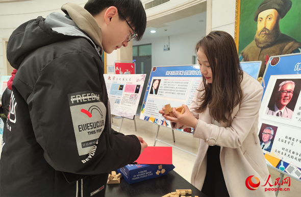 在數(shù)學(xué)游戲體驗(yàn)區(qū),百余名學(xué)子沉浸在系列數(shù)學(xué)游戲中,巧過“華容道”、智解“九連環(huán)”、拆拼“魯班鎖”,用魔方演繹空間幾何之美、用數(shù)獨(dú)推演數(shù)字迷宮……大家沉浸在思維挑戰(zhàn)中,激發(fā)出對(duì)數(shù)學(xué)的興趣和探索欲。