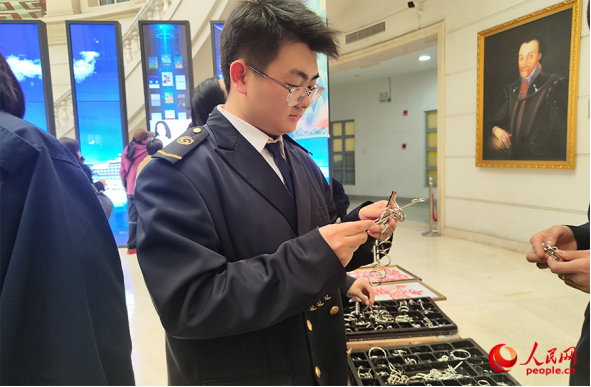 在非遺展演專區(qū),曾氏華服手工精細(xì)制作技藝傳承人現(xiàn)場教學(xué)盤扣設(shè)計(jì)的“黃金比例”,津門戈氏魚蟲糖藝傳承人設(shè)計(jì)推出“數(shù)學(xué)文化節(jié)主題糖畫”,田氏船模制作技藝傳承人為大家講解大運(yùn)河上的商船、客船、官船的制作方法。通過將數(shù)學(xué)美學(xué)融入傳統(tǒng)技藝,讓大家進(jìn)一步感受到數(shù)學(xué)與傳統(tǒng)文化的雙向賦能。