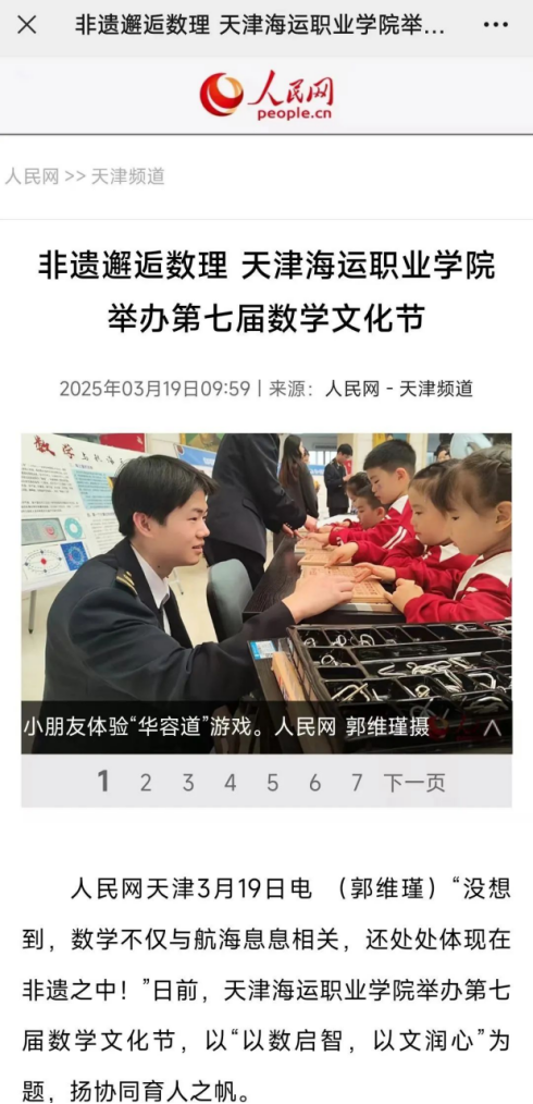 人民網(wǎng)天津3月19日電 (郭維瑾)“沒想到,數(shù)學(xué)不僅與航海息息相關(guān),還處處體現(xiàn)在非遺之中!”日前,天津海運(yùn)職業(yè)學(xué)院舉辦第七屆數(shù)學(xué)文化節(jié),以“以數(shù)啟智,以文潤心”為題,揚(yáng)協(xié)同育人之帆。
