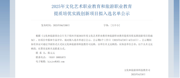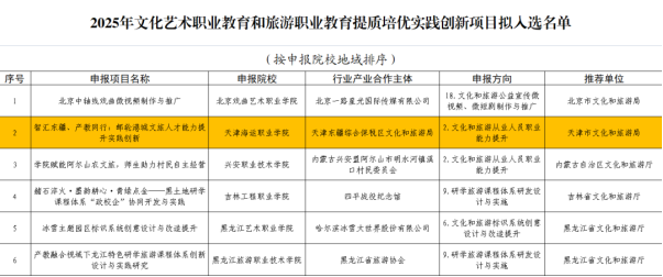 此次項目為文化和旅游部貫徹落實《教育強國建設(shè)規(guī)劃綱要(2024-2035年)》和2025年全國文化和旅游廳局長會議精神,推動文化藝術(shù)職業(yè)教育、旅游職業(yè)教育與行業(yè)產(chǎn)業(yè)的深度融合、協(xié)同發(fā)展、雙向賦能,以“行業(yè)出題、院校答題”的改革導(dǎo)向組織的申報。
