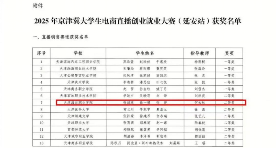 近日,由天津市委教育工委、天津市教委和陜西省延安市政府共同組織的2025年京津冀大學(xué)生電商直播創(chuàng)業(yè)就業(yè)大賽(延安站)落下帷幕。天津海運(yùn)職業(yè)學(xué)院學(xué)生團(tuán)隊(duì)充分運(yùn)用所學(xué)專業(yè)知識(shí)和直播技能應(yīng)賽,榮獲直播銷售賽道二等獎(jiǎng)。