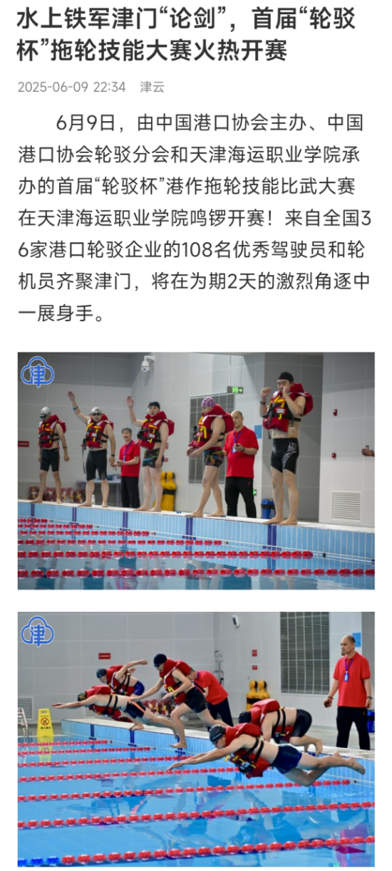 6月9日,由中國港口協(xié)會主辦、中國港口協(xié)會輪駁分會和天津海運職業(yè)學(xué)院承辦的首屆“輪駁杯”港作拖輪技能比武大賽在天津海運職業(yè)學(xué)院鳴鑼開賽!來自全國36家港口輪駁企業(yè)的108名優(yōu)秀駕駛員和輪機員齊聚津門,將在為期2天的激烈角逐中一展身手。