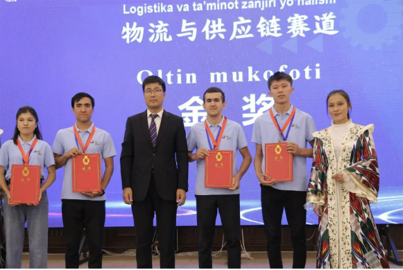 中國駐烏茲別克斯坦大使館孫長棟先生為物流與供應鏈賽道金獎選手頒獎
