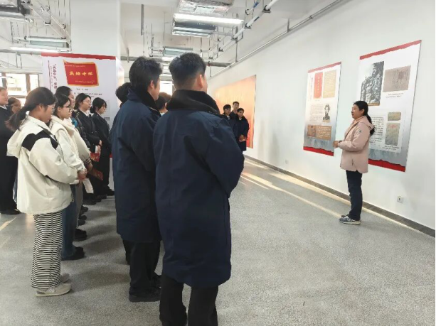 在沉浸式參觀環節,思政課教師陳宏偉以抗美援朝戰爭中19面志愿軍英雄集體所榮獲的獎旗為線索,生動講述戰旗背后的戰斗故事。同學們深情凝望著彈孔依稀、血跡暗沉的戰旗,似乎開啟了一場跨越時空的精神對話,深刻體悟到每一面戰旗都見證著志愿軍將士以血肉之軀捍衛祖國尊嚴的壯烈歷程,每一個故事都彰顯了祖國利益高于一切的家國情懷。