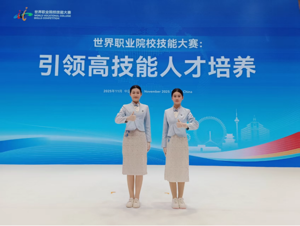 在同期舉行的2025年世界職業(yè)院校技能大賽及“引領(lǐng)高技能人才培養(yǎng)”高端會(huì)議期間,學(xué)院“嘉”禮學(xué)社禮儀隊(duì)?wèi)?yīng)邀承擔(dān)了冠軍總決賽及高端會(huì)議的會(huì)務(wù)服務(wù)任務(wù),使理論的價(jià)值在實(shí)踐中得以充分檢驗(yàn)和升華。