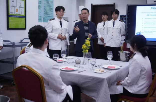 天津海運職業(yè)學院創(chuàng)新實踐教育部“五金”建設(shè)戰(zhàn)略部署,攜手全球郵輪產(chǎn)業(yè)領(lǐng)軍企業(yè)美國皇家加勒比集團,共同探討郵輪人才培養(yǎng)新機制,打造產(chǎn)教融合升級版。5月7日-8日,皇家加勒比集團郵輪船隊區(qū)域餐飲總監(jiān)聶超來訪期間,雙方通過專題研討、企業(yè)導師示范課等多元形式,構(gòu)建“教育鏈-人才鏈-產(chǎn)業(yè)鏈”三鏈融合機制,率先探索國際化高端郵輪人才培養(yǎng)標準體系,為現(xiàn)代職業(yè)教育體系建設(shè)注入創(chuàng)新動能。