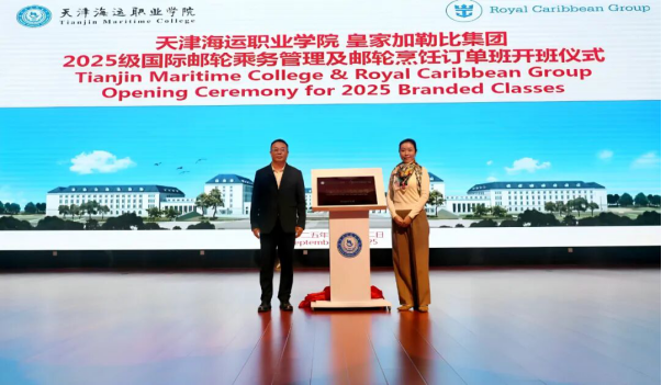 9月22日,天津海運(yùn)職業(yè)學(xué)院與皇家加勒比集團(tuán)舉行2025級(jí)國(guó)際郵輪乘務(wù)管理及郵輪烹飪專業(yè)訂單班開班儀式。儀式以“揚(yáng)帆啟航,共育未來”為主題,學(xué)院院長(zhǎng)于忠武、副院長(zhǎng)王明春、皇家加勒比集團(tuán)全球資源與項(xiàng)目總監(jiān)范雪菲、校企合作項(xiàng)目高級(jí)經(jīng)理Garima Nanda出席儀式。企業(yè)代表、郵輪旅游系教師、畢業(yè)生代表及全體訂單班學(xué)生共同參與。
