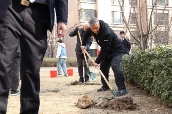 活動現場,景新社區退休老黨員張老師介紹了銀杏樹苗的種植方法,講解了植樹的重要意義,鼓勵大家要堅持植樹,成為“植樹人”,當好“護綠者”。隨后,團員青年和志愿者們踴躍投入到植樹勞動中,大家通力協作,在張老師的指導下,揮鍬填坑、扶正樹身、培土夯實、澆水施肥,各環節細致認真、一氣呵成,整個植樹活動現場呈現出一片熱火朝天的勞動景象。