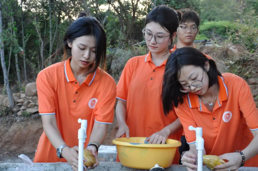 為培養同學們良好的團隊協作能力和樂于奉獻的精神,培養吃苦耐勞、艱苦奮斗的精神,提升勞動素養,實現全面發展,在此次實踐期間,隊員們自己洗菜、燒火、做飯,在相互配合下,共同搭建帳篷,布置居住營地,豆大的汗珠濕透了衣服,但是大家心里都感覺到無比的快樂與充實。他們用實際行動踐行“自己動手、豐衣足食”的勞動精神,深刻體會到社會實踐活動不僅是對知識的掌握,更是一種對生活和自然的尊重與敬畏?!肮雄`履始玉成,行而不輟終致遠”,只有躬耕實踐、持之以恒地努力才能實現遠大的目標、獲得成功。同學們表示要把青春播撒在希望的田野上,以夢為犁,勤耕不輟,履踐致遠!