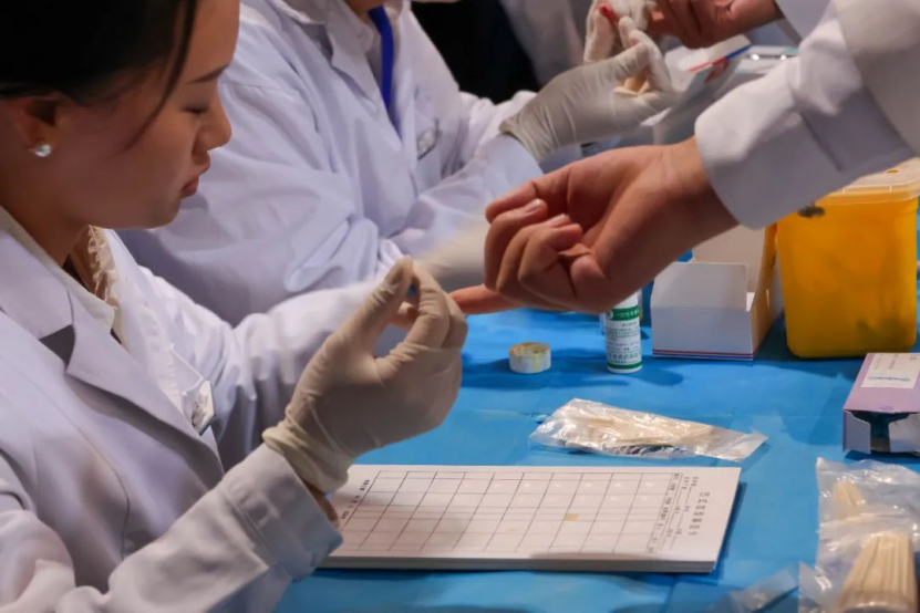 血液中心的醫(yī)護(hù)人員為同學(xué)們精心籌備了驗(yàn)血型的小活動(dòng),現(xiàn)場感受血型的奇妙,了解自己的血型。同時(shí)血液中心的醫(yī)護(hù)人員為同學(xué)們講解了關(guān)于獻(xiàn)血中的一些基本知識(shí),讓同學(xué)們了解到血液當(dāng)中血小板的用途以及獻(xiàn)血前的注意事項(xiàng)等。