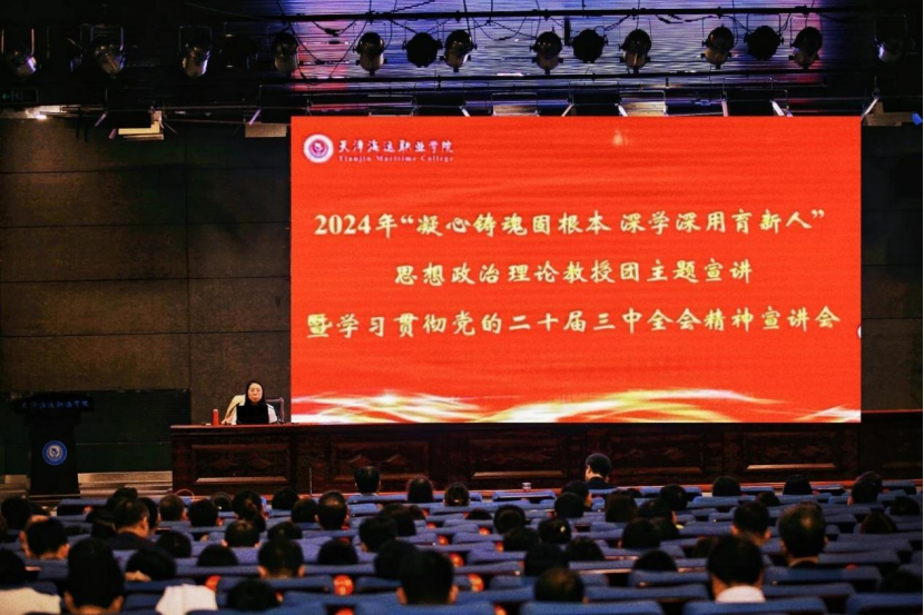 為深入學習貫徹黨的二十屆三中全會精神,深刻領會習近平總書記視察天津重要講話精神,牢牢把握“四個善作善成”重要要求,10月18日,天津海運職業學院召開2024年“凝心鑄魂固根本 深學深用育新人”思想政治理論教授團主題宣講暨學習貫徹黨的二十屆三中全會精神宣講會。邀請中共天津市委黨校公共管理學教研部(心理調適中心)原主任王曉霞教授作了題為“以進一步全面深化改革,把中國式現代化藍圖變為現實,學習貫徹黨的二十屆三中全會精神”的專題宣講。黨委副書記王軍主持會議,學院班子成員、中層干部、各支部黨員、學生黨員及師生代表400余人參加了宣講會。