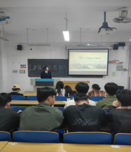 活動伊始,海運文學社干部張婷同學以“研究背景”為切入點,娓娓講述書法的起源。原始社會陶器、龜甲之上的遠古符號,諸如半坡彩陶符號,作為漢字與書法的萌芽,拉開了此次書法文化探尋之旅的序幕。而甲骨文,作為中國書法體系中最早的文字形態,更是讓社員們切實感受到書法藝術深厚的歷史積淀。