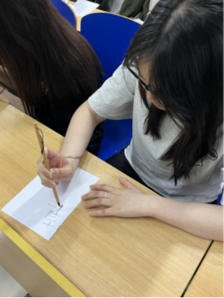 接下來,活動聚焦于“如何書寫一手好書法”。詳細闡釋了毛筆、墨汁、宣紙、硯臺等書法工具的挑選要點,規范講解了坐姿、站姿等正確書寫姿勢,以及握筆法的關鍵訣竅,通過理論與實踐相結合的方式,為社員們提供了系統且實用的書法學習指導。接著,在書法活動成果展示環節,成員們專注伏案書寫。展示時,作品亮點頻出。