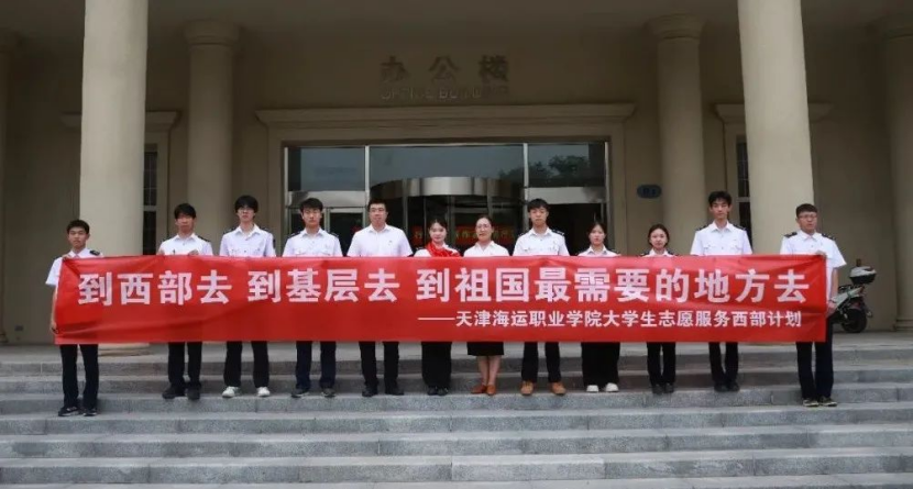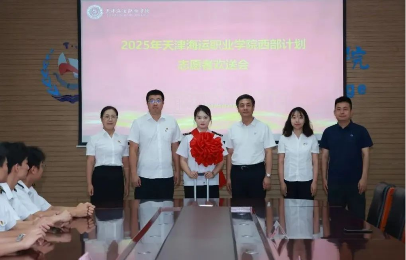 6月26日,天津海運職業學院團委舉行2025年西部計劃志愿者送行儀式。學院黨委副書記王軍,工程技術系黨支部副書記許裕冬,院團委教師于潔欣、武海瀛,工程技術系輔導員吳立鵬以及團員青年代表一同歡送學院2025年西部計劃志愿者劉美靜。