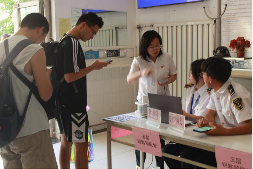 志愿者通力協作,為新生提供全方位保障:綠色通道志愿組為家庭經濟困難學生提供貼心服務;交費處志愿組協助負責老師高效便捷完成繳費工作;宿舍志愿組為新生發放宿舍鑰匙等;迎新志愿組全力值守,確保新生入校安全有序。