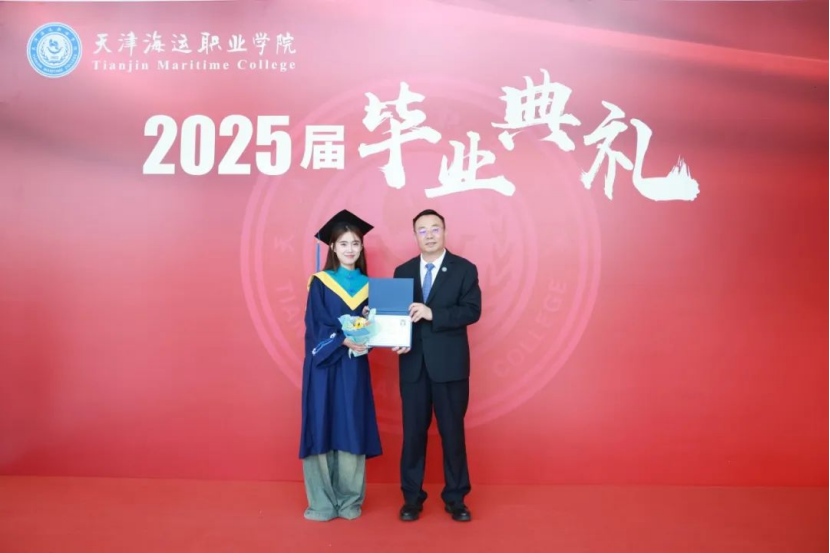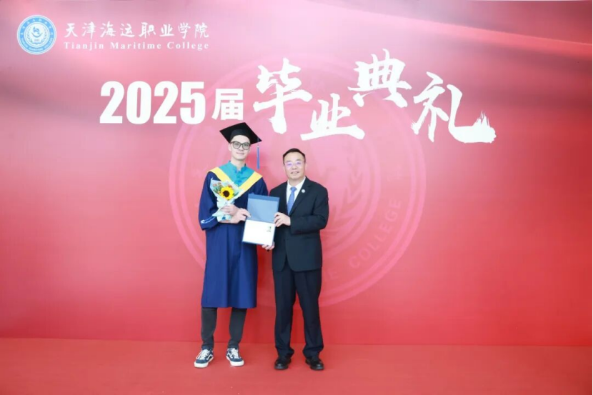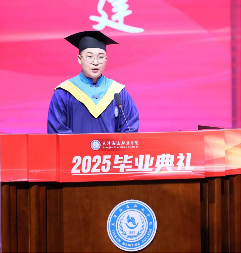 天津市大學(xué)生年度人物提名獎獲得者、工程技術(shù)系理化測試與質(zhì)檢技術(shù)(無損檢測技術(shù))專業(yè)學(xué)生王銘鑫,郵輪旅游系旅游管理專業(yè)烏茲別克斯坦籍留學(xué)生王馬克西姆晉平分別代表2025屆畢業(yè)生、2025屆留學(xué)生發(fā)言,他們細數(shù)了三年求學(xué)的難忘時刻,表達了對母校及老師的依依不舍和由衷謝意。尤其是王馬克西姆晉平同學(xué)娓娓道來的“中國緣”“海運情”,以真實而生動的故事展示了學(xué)院國際化辦學(xué)成效,讓我們看到了“人類命運共同體”閃亮的青春注腳。