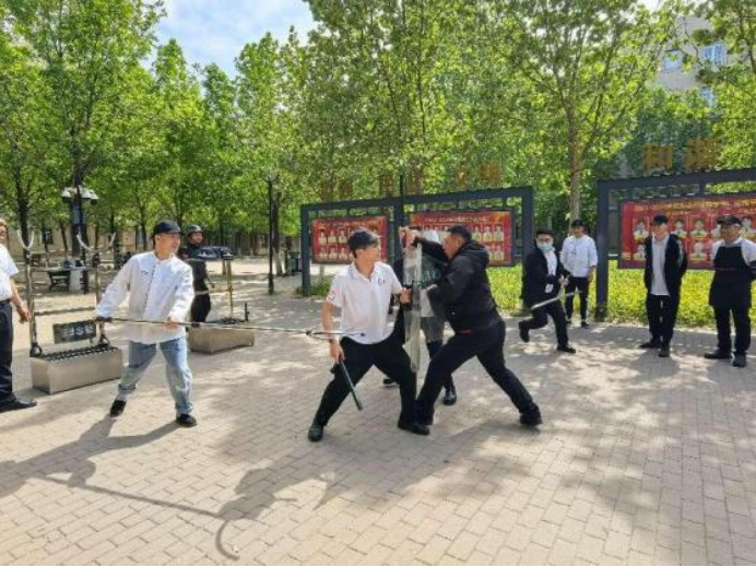 在學(xué)生公寓中庭的廣場(chǎng)上,防暴盾牌與鋼叉碰撞出清脆聲響。培訓(xùn)教官以高校突發(fā)案例為切入點(diǎn),講解防爆器材的功能特性:“防暴盾牌要斜45度持握,既能緩沖沖擊,又能擴(kuò)大視野;鋼叉卡喉時(shí)需協(xié)同隊(duì)友形成三角站位。”參訓(xùn)人員兩兩結(jié)對(duì),在模擬“持械闖入”場(chǎng)景中反復(fù)演練攻防技巧,宿管員李阿姨坦言:“過去總以為危險(xiǎn)離得遠(yuǎn),現(xiàn)在明白一扇宿舍門后的安全,需要我們每個(gè)人都能扛起第一道防線。”