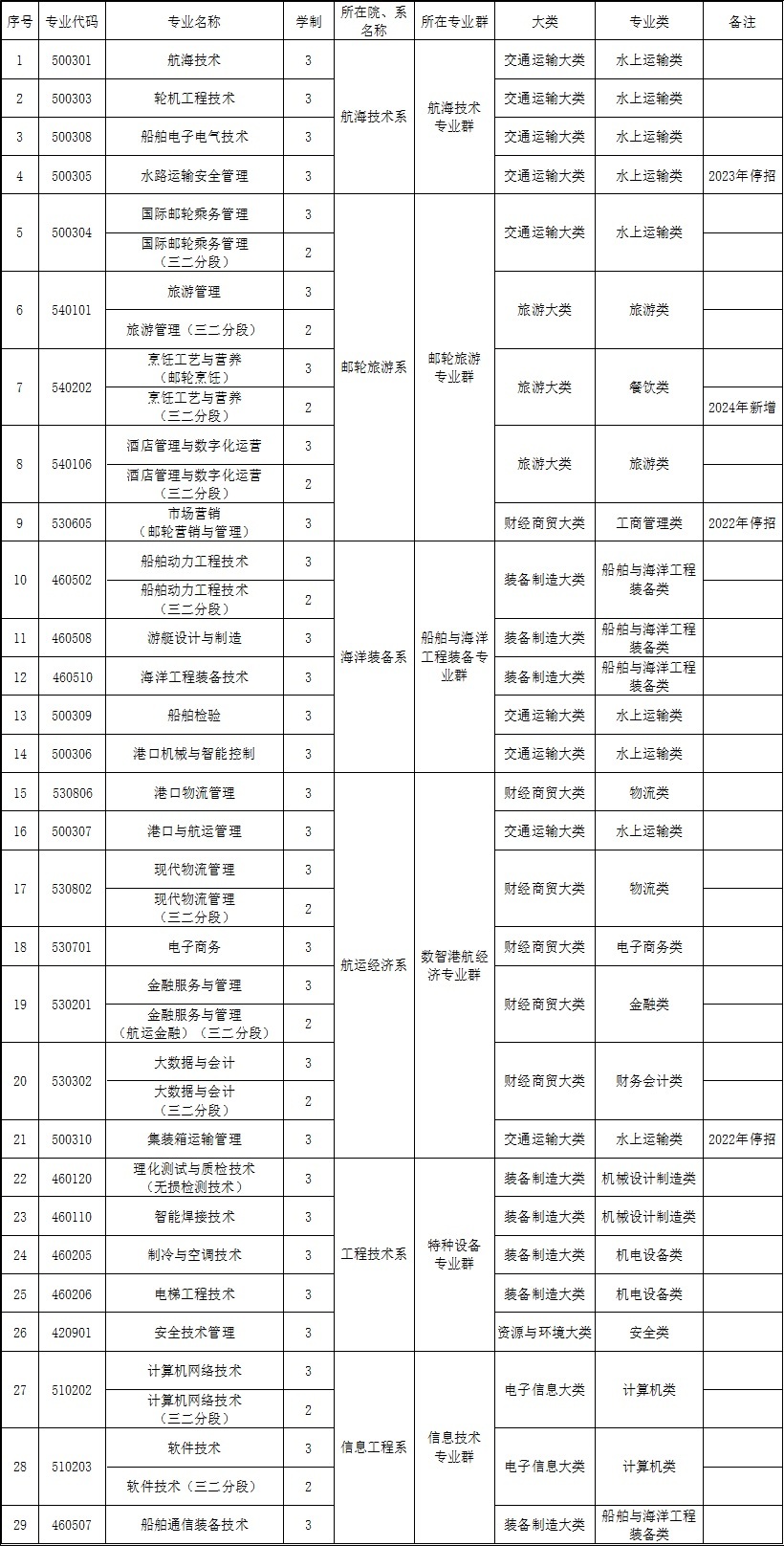 天津海運職業學院高職專業設置情況表